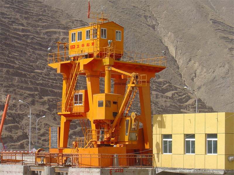 雙向門(mén)機(jī)大車(chē)沿壩體方向運(yùn)動(dòng),小車(chē)沿水流方向運(yùn)動(dòng)。一般配有多套抓梁,可對(duì)壩上不同中心線上的多孔閘門(mén)及攔污柵進(jìn)行啟閉??稍O(shè)置懸臂以增大門(mén)機(jī)工作范圍;部分門(mén)機(jī)配有回轉(zhuǎn)吊,回轉(zhuǎn)吊回轉(zhuǎn)半徑可達(dá)180°,可以輔助壩上設(shè)備的運(yùn)輸與安裝。